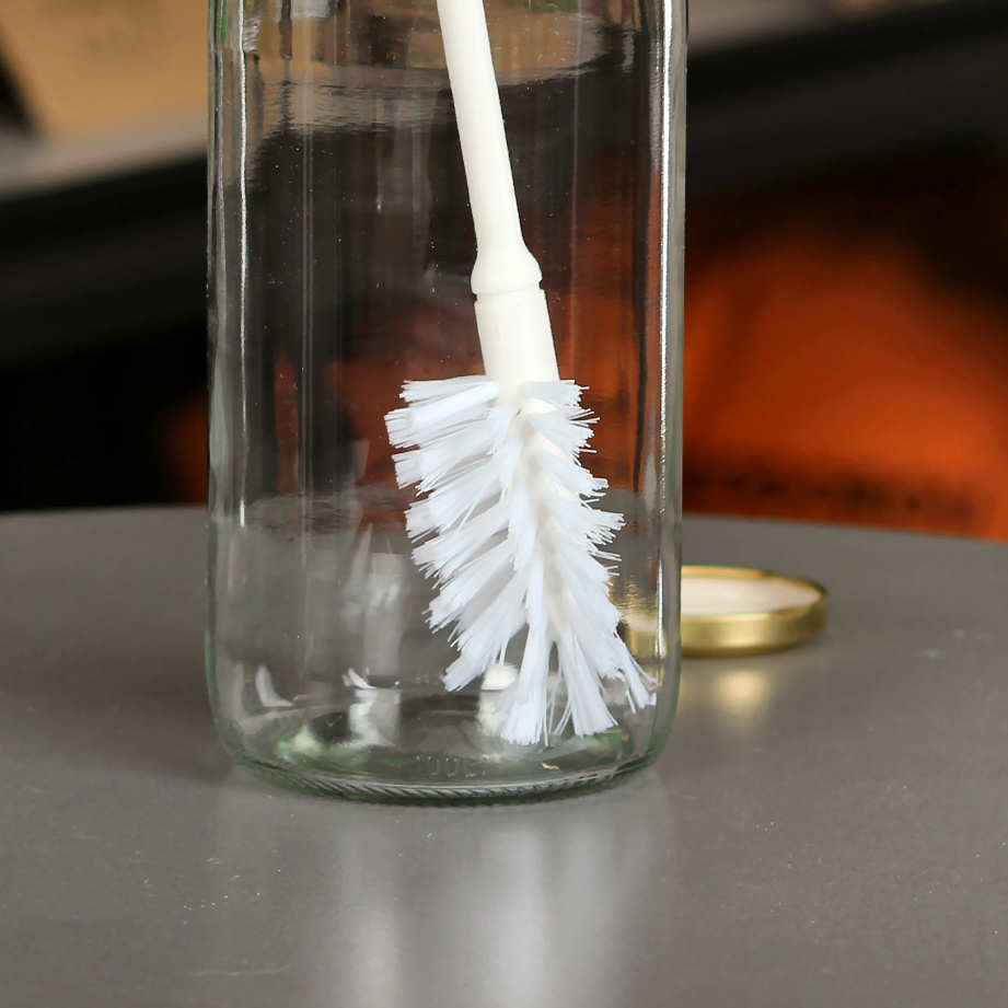 En flaskborste är oumbärlig vid rengöring av flaskor. Den rengör enkelt dels flaskor med bred hals, men även vanliga läsk/ölflaskor med smal hals.