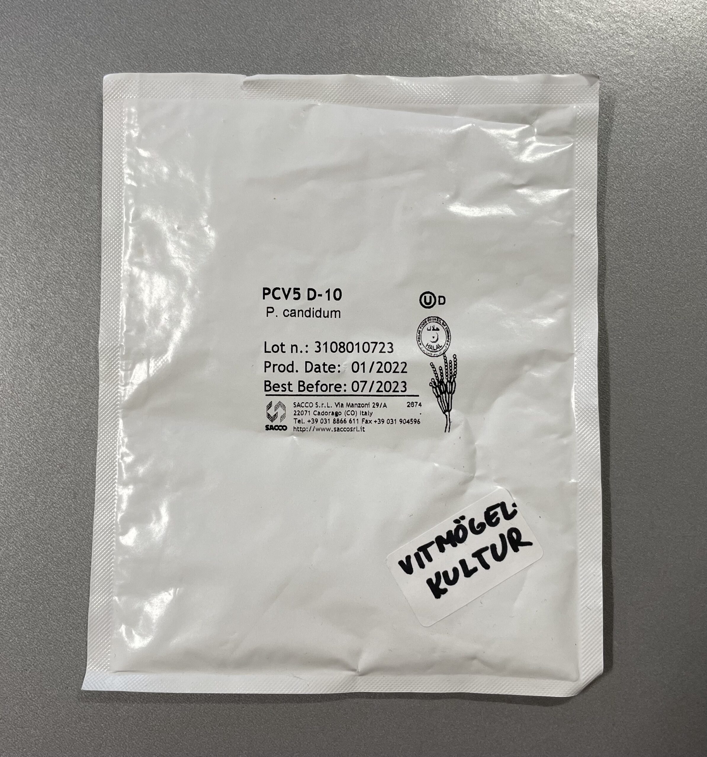 Frystorkad kultur av Penicillium candidum för vitmögelost (Camembert, Brie, Reblochon mfl). Mycelium växten resulterar i ett snabbt utvecklat, mycket kort, vitt och färgstabilt ytskikt. Tillsätt lösningen till ystmjölken före ostlöpetillsats eller spreja lösningen på ostytan.